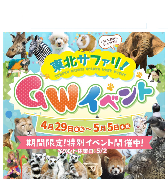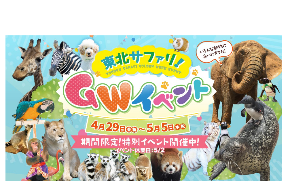 東北サファリパークはこれらのチケットのトラブルについての責任は負いかねます。各種チケット正規取扱窓口でのご購入をお願いいたします。